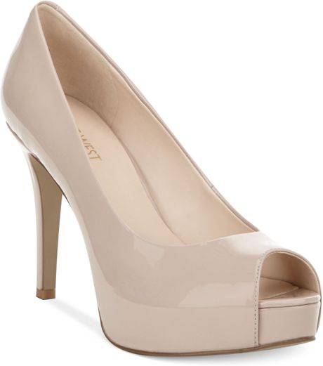 Image Name: Nine West Camya Platform Pumps in Beige (Poudre Patent) | Lyst